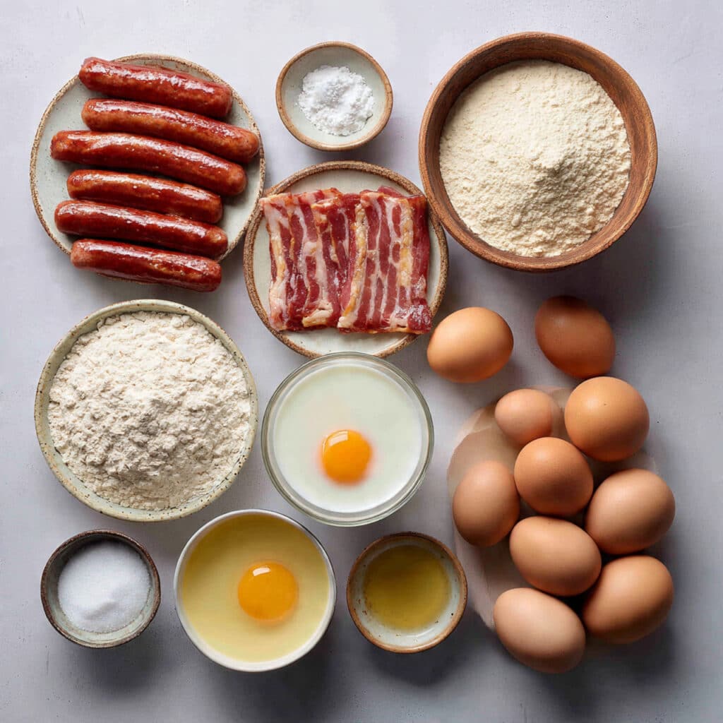 - Streaky Bacon: 8 slices. Wraps the sausages for extra crispness and richness.