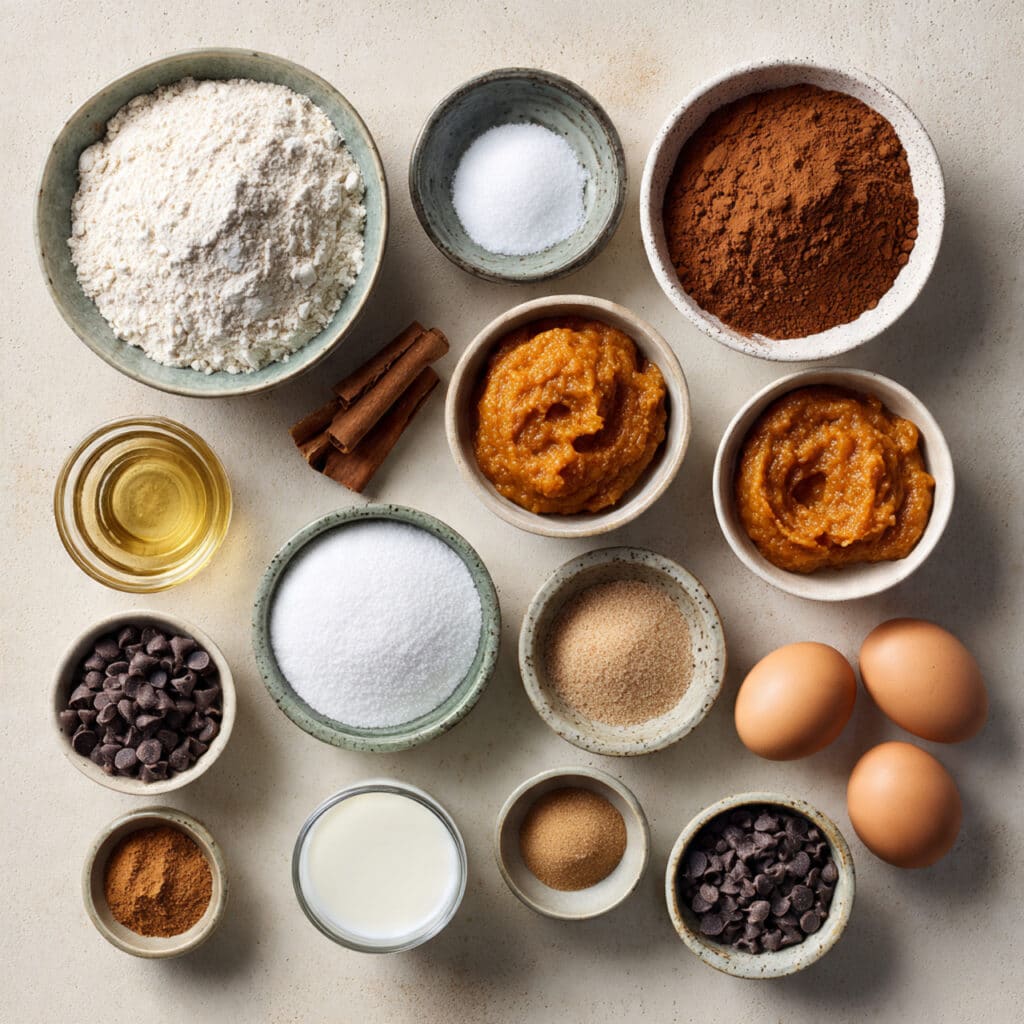 In one bowl, whisk together the flour, baking powder, baking soda, salt, cinnamon, and nutmeg. In a larger bowl, mix pumpkin puree, granulated sugar, brown sugar, eggs, oil, and vanilla until smooth. Gradually add dry ingredients to the wet and stir gently until just combined. Fold in chocolate chips if using. - Prepare Your Cooking Vessel: