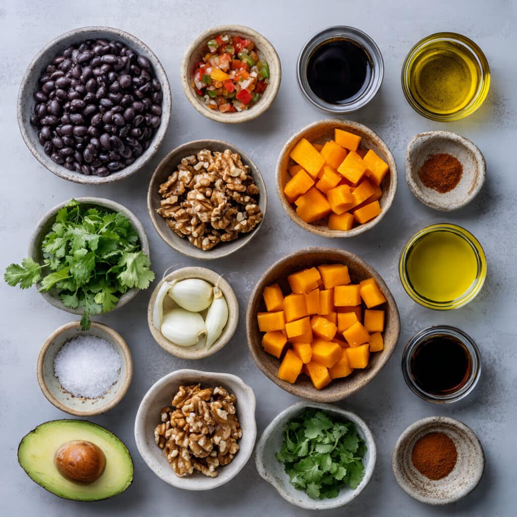 This recipe was born out of one of those “what’s in my pantry” evenings. A leftover wedge of pumpkin, some canned black beans, a bag of walnuts I bought for baking and never used. Tossing them together into a pot felt a little daring, but the result? Pure comfort. The pumpkin melts slightly, the walnuts give a surprising texture, and the chili flavors round everything out in the most satisfying way.