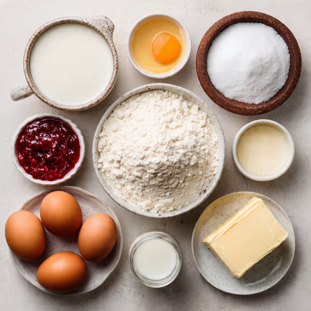 Raspberry Jam: This ingredient brings brightness, tartness, and color to every slice. A good quality jam with visible fruit pieces gives you the best flavor and texture.