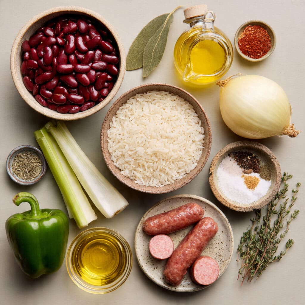 This dish is all about contrast. The creamy beans, tender sausage, and fluffy rice create a perfect trio. You’ll taste the slow-built layers of flavor—herbs, spice, smoke, and a touch of sweetness from the sautéed vegetables. Every bite is comforting, flavorful, and just a little addictive.