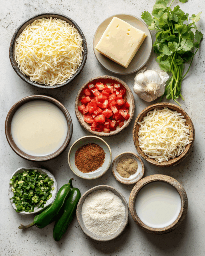 Making queso at home is all about balance, flavor, and creaminess. Here’s what brings it all together: