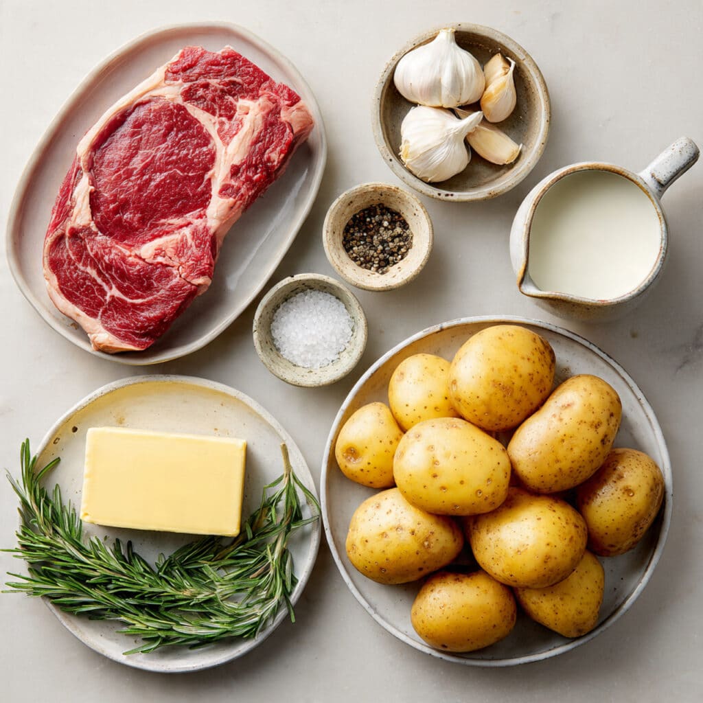 Ingredients in Rosemary Garlic Steak with Creamy Mash