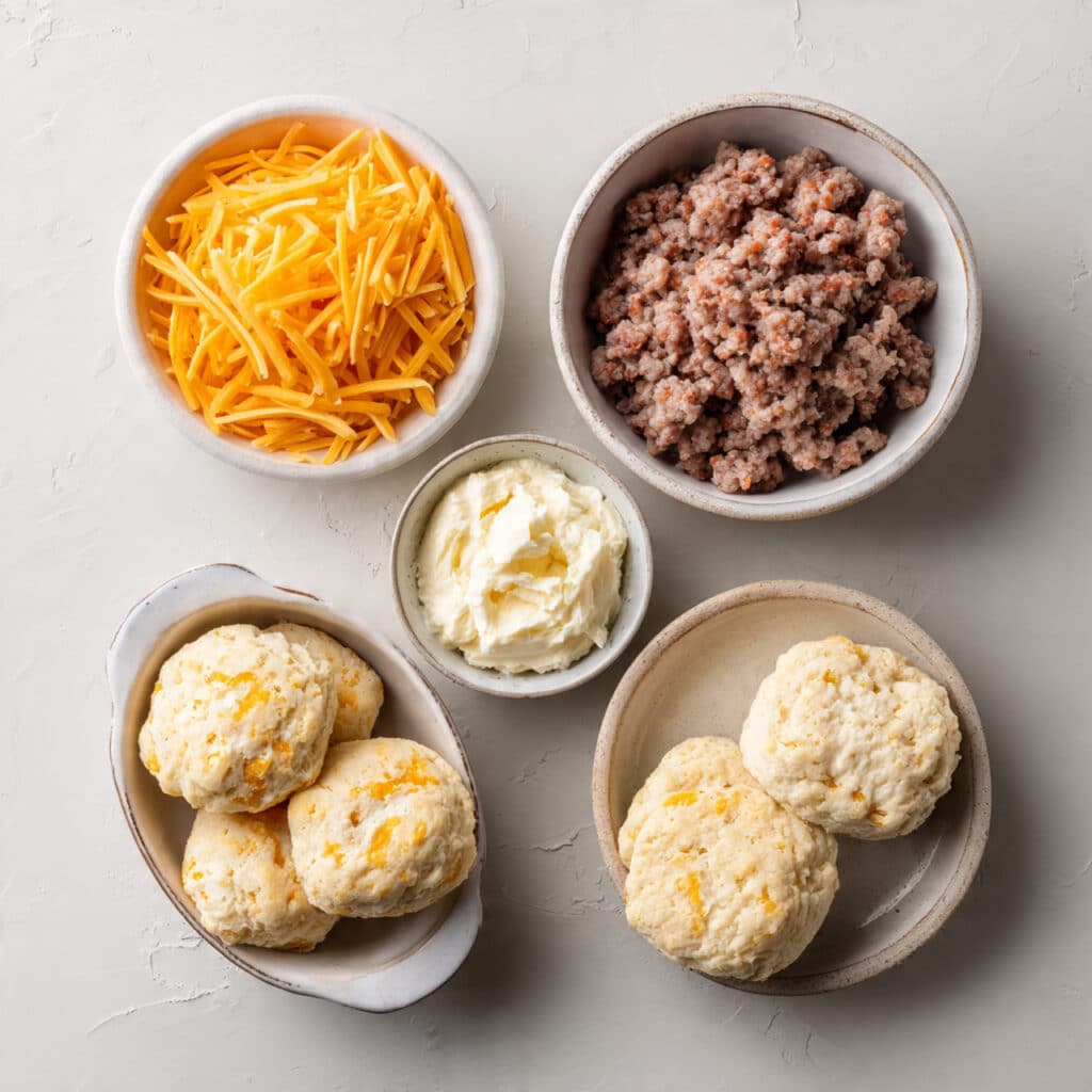 Keywords: sausage biscuit bites, breakfast snack, easy brunch idea, cheesy sausage bites, savory biscuit snacks