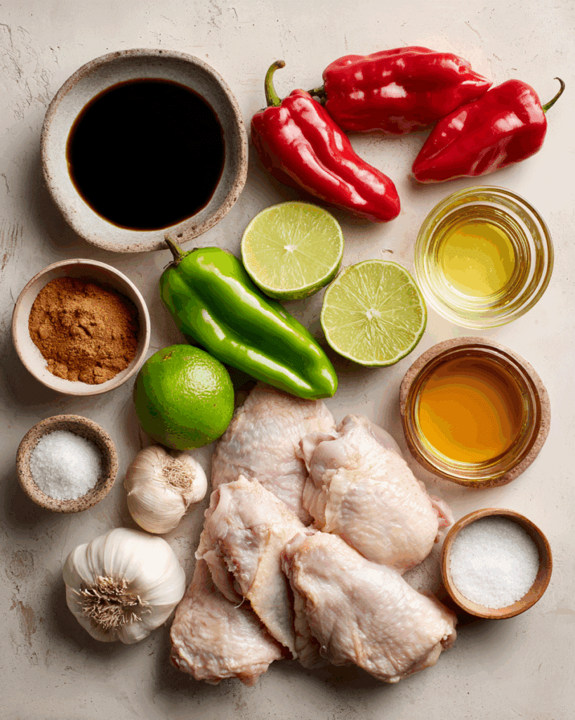 - Chicken Thighs: 8 pieces (bone-in, skin-on)