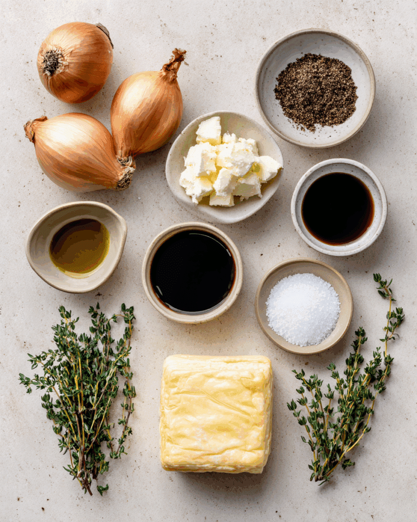 - Puff Pastry: 1 sheet, thawed. A flaky, buttery base that holds everything together.