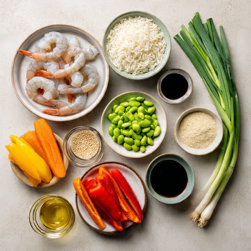 Ingredients in Shrimp Rice Bowl with Vegetables
