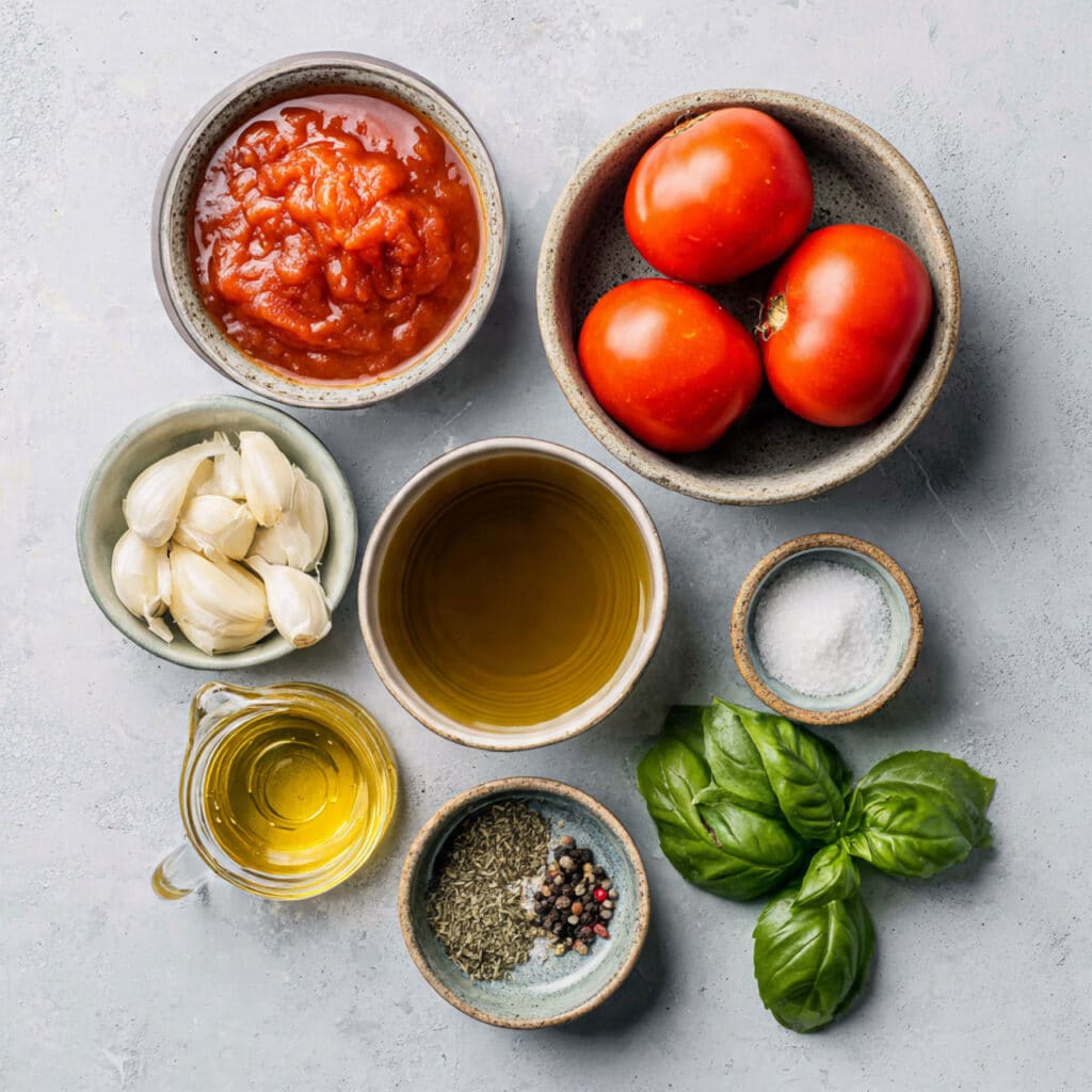 - Granulated Sugar: 1 teaspoon, gently balances tomato acidity.