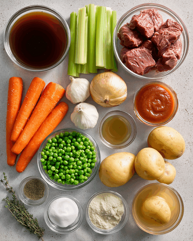 - Beef Stew Meat: 2 pounds, cut into 1-inch cubes