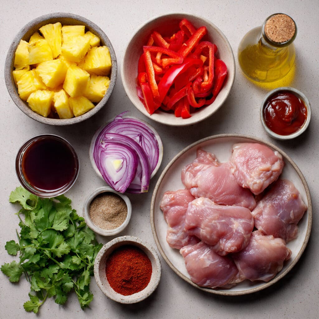 Every forkful is a bite of contrasts. The chicken is smoky, juicy, and glazed, while the pineapple caramelizes into sweet, golden bites. The bell peppers and onions soften and char just enough to add that irresistible roasted depth. The final cilantro sprinkle keeps things bright and balanced.