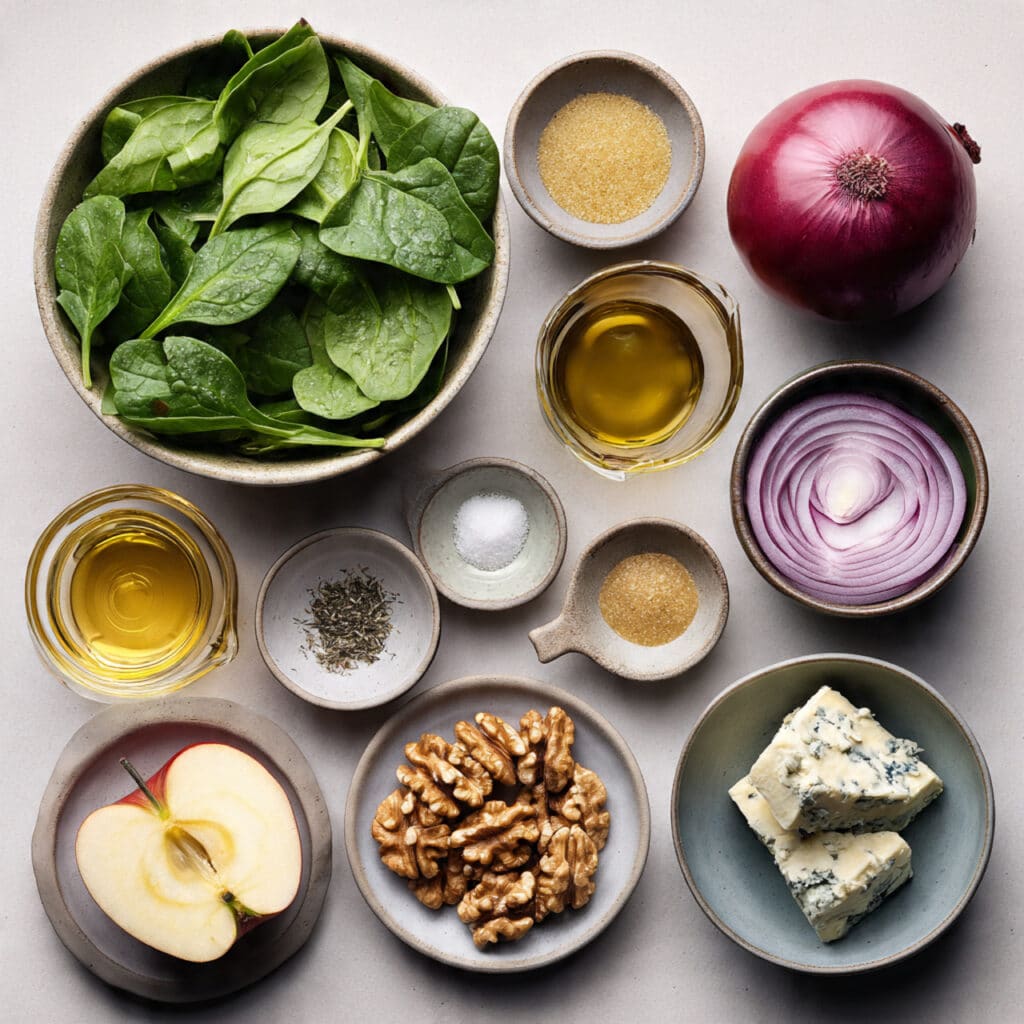 Ingredients in Spinach Salad with Apples, Blue Cheese & Walnuts