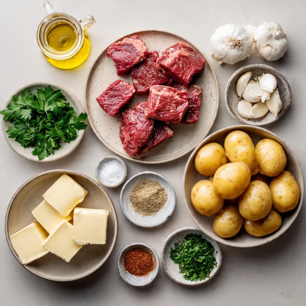 Make-Ahead Friendly: You can prep the potatoes, season the steak, and mince the garlic ahead of time. That makes final cooking feel smooth and stress-free.