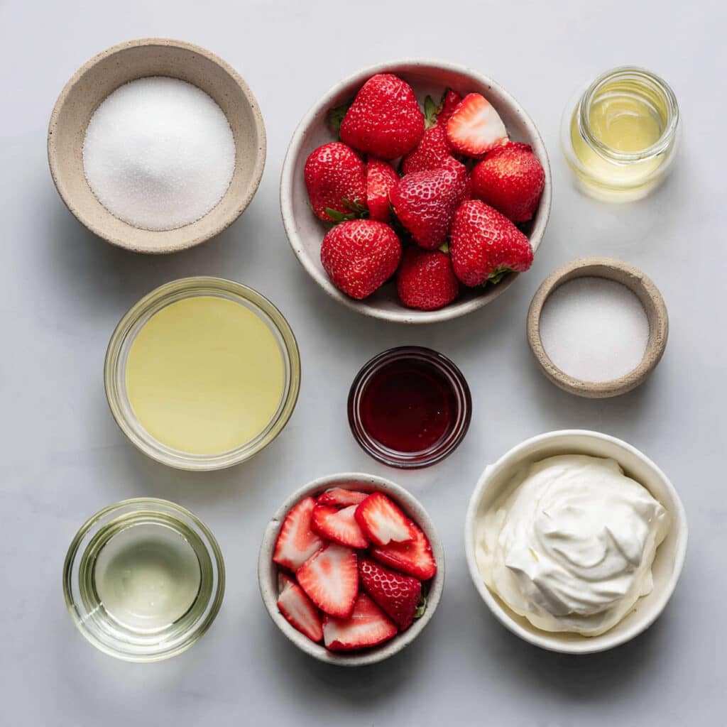 Now that the kitchen is ready, let’s talk ingredients, because this recipe shines when each one plays its part. The strawberries bring freshness, the cream adds body, and the small supporting ingredients quietly make the texture smooth and spoonable.