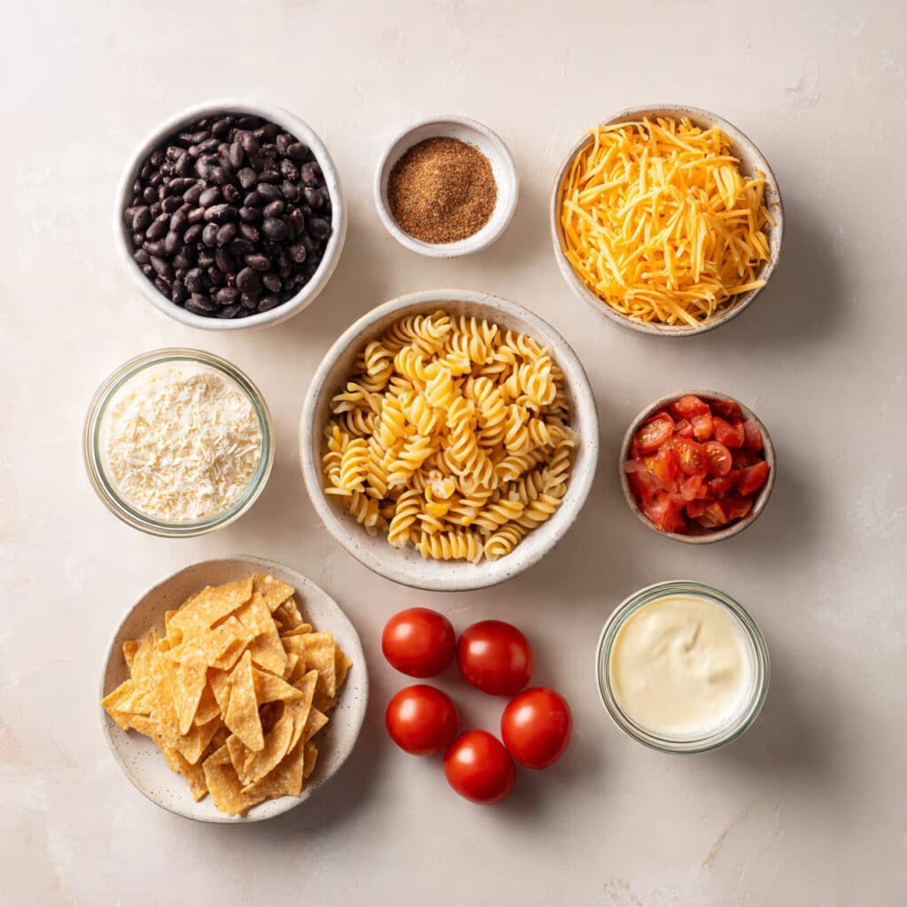 This recipe was born out of one of those “use what you have” kitchen moments. It was a warm afternoon, and I needed a quick dish for a last-minute potluck. A box of pasta, a can of beans, leftover taco seasoning, and a bottle of ranch—suddenly, inspiration struck. The result? A creamy, zesty, crowd-pleasing salad that has since become a regular in my kitchen.