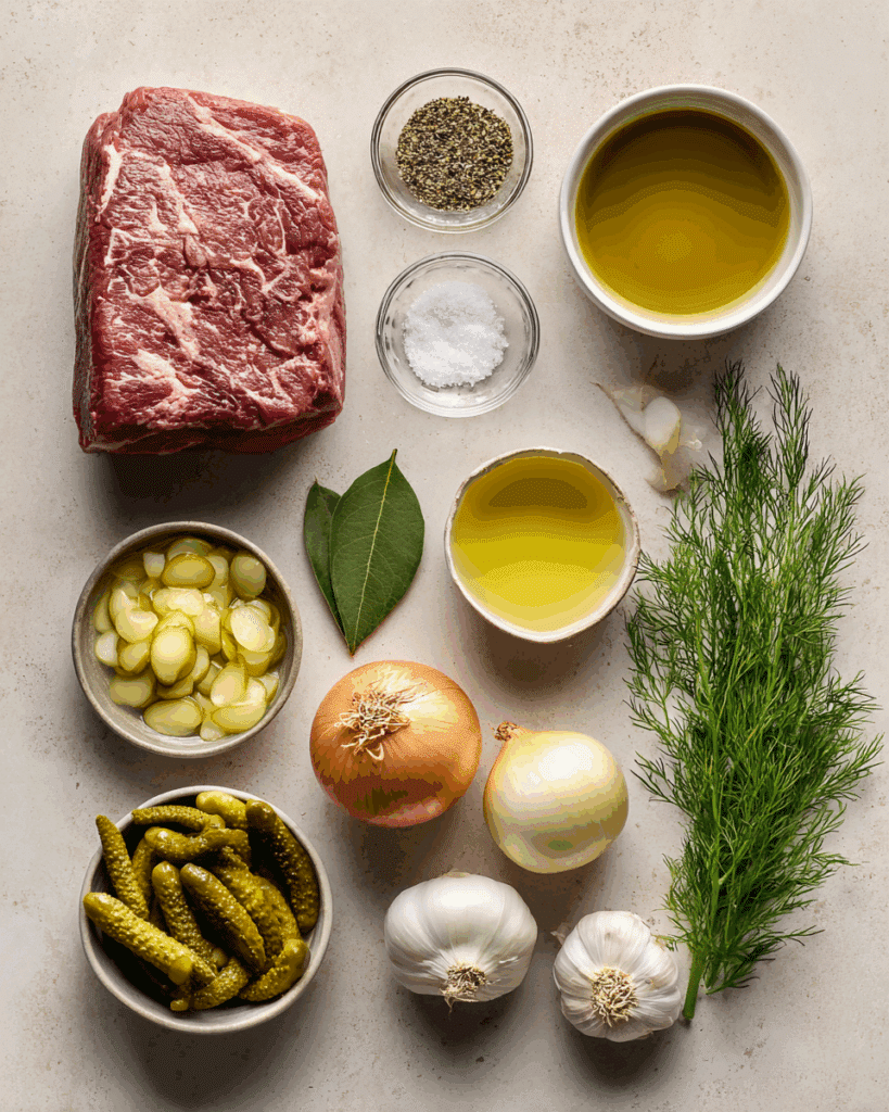 What makes this roast so special is how the richness of the meat contrasts with the brightness of the pickles. You get juicy, melt-in-your-mouth beef with surprise bursts of tang in every bite. The broth thickens slightly into a luscious gravy that ties it all together.