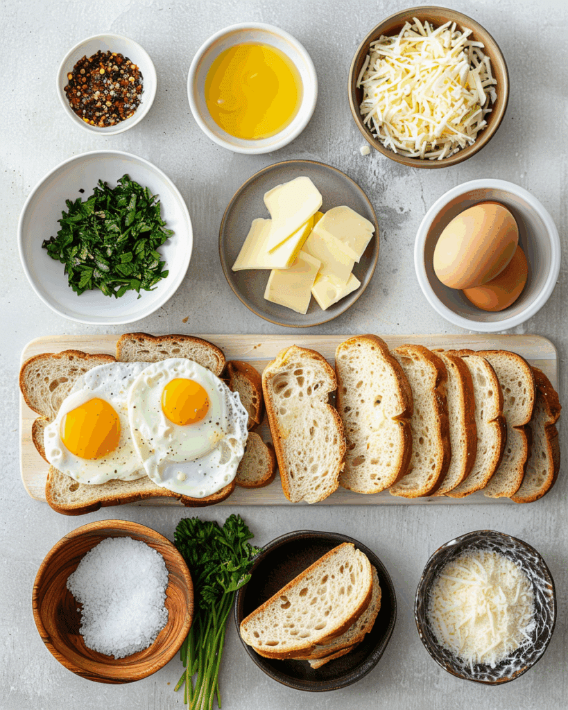 This toast can be partially prepped ahead. You can beat the eggs, grate the cheese, and even toast the bread slightly before assembly. Store any leftovers in an airtight container in the fridge. To reheat, just pop them back on a skillet or in a toaster oven for 3–5 minutes. Note: It’s best enjoyed fresh, but even leftovers hold up well with a quick crisping.