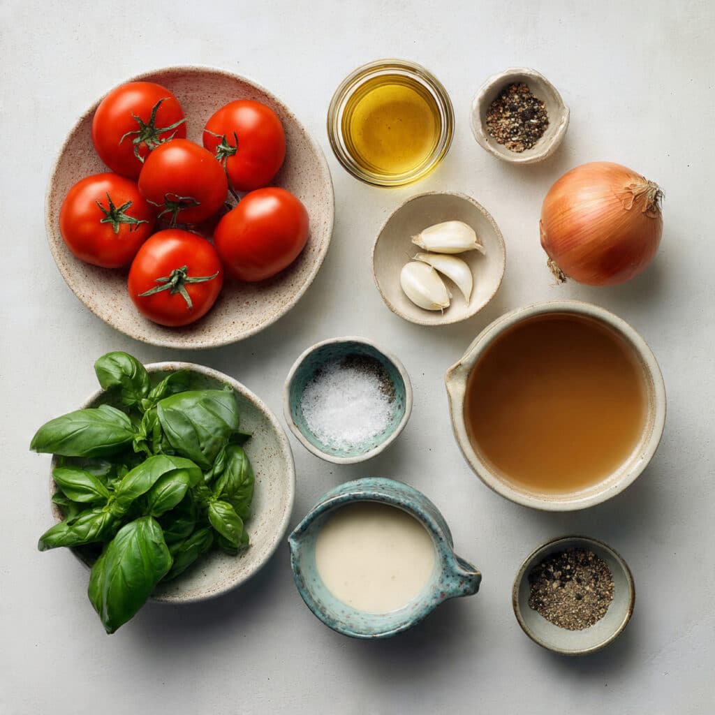 This soup takes me right back to my grandma’s kitchen. She used to make it every Sunday, with tomatoes straight from her garden and a handful of basil plucked just moments before. We’d sit around the table with thick slices of bread and big bowls of this velvety soup, talking about everything and nothing. That memory inspired me to recreate the same warm, nostalgic feeling in this recipe.
