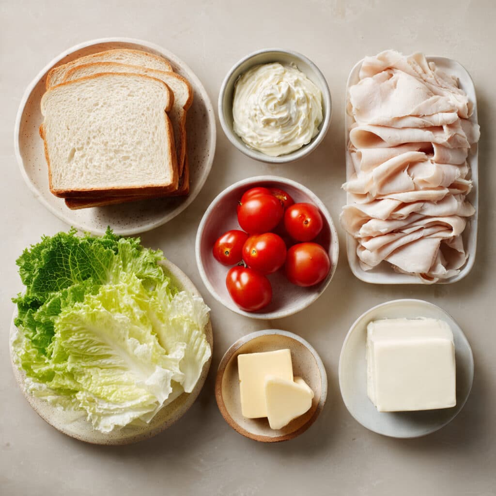 - Assemble the Dish: Layer turkey, cheese, lettuce, and tomato between the bread slices, mayo sides facing inward.