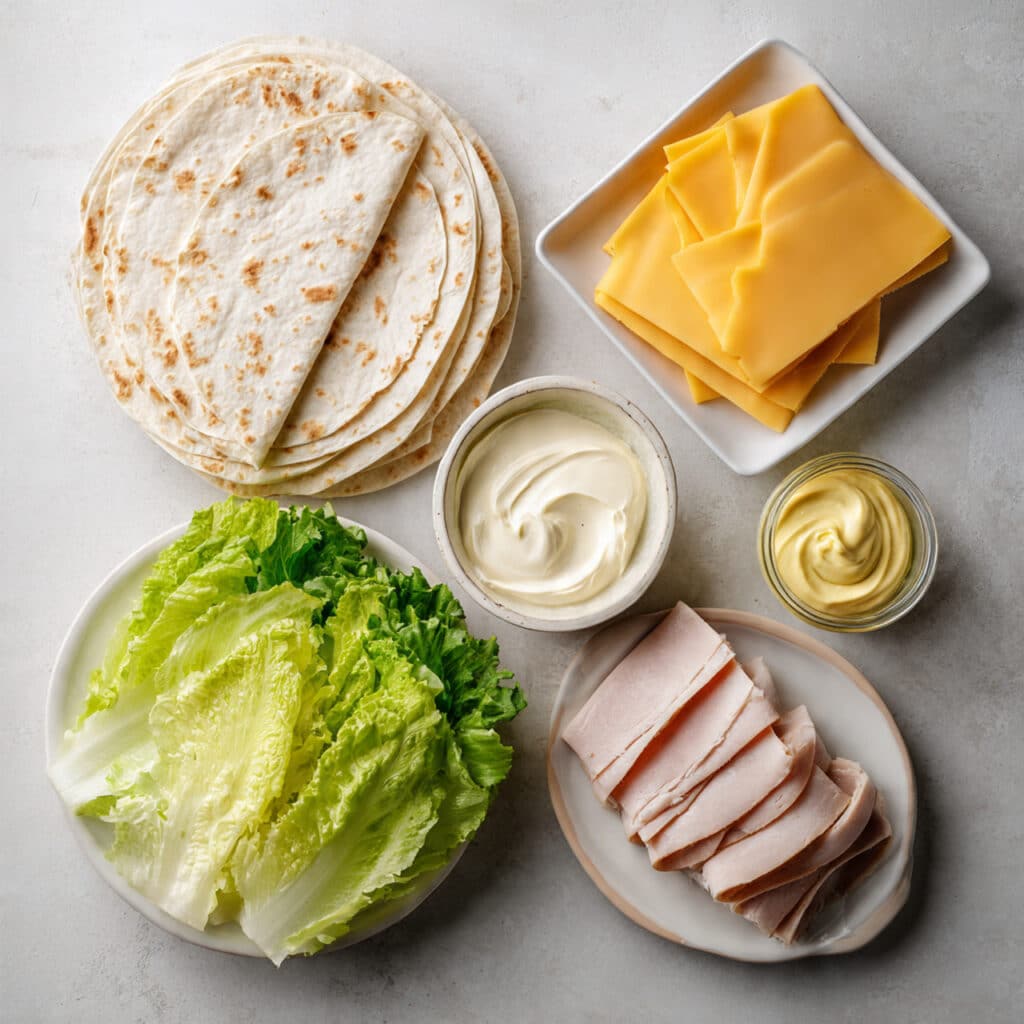 - Deli Turkey Slices: 6 to 8 slices — lean and savory, this is your main protein layer.