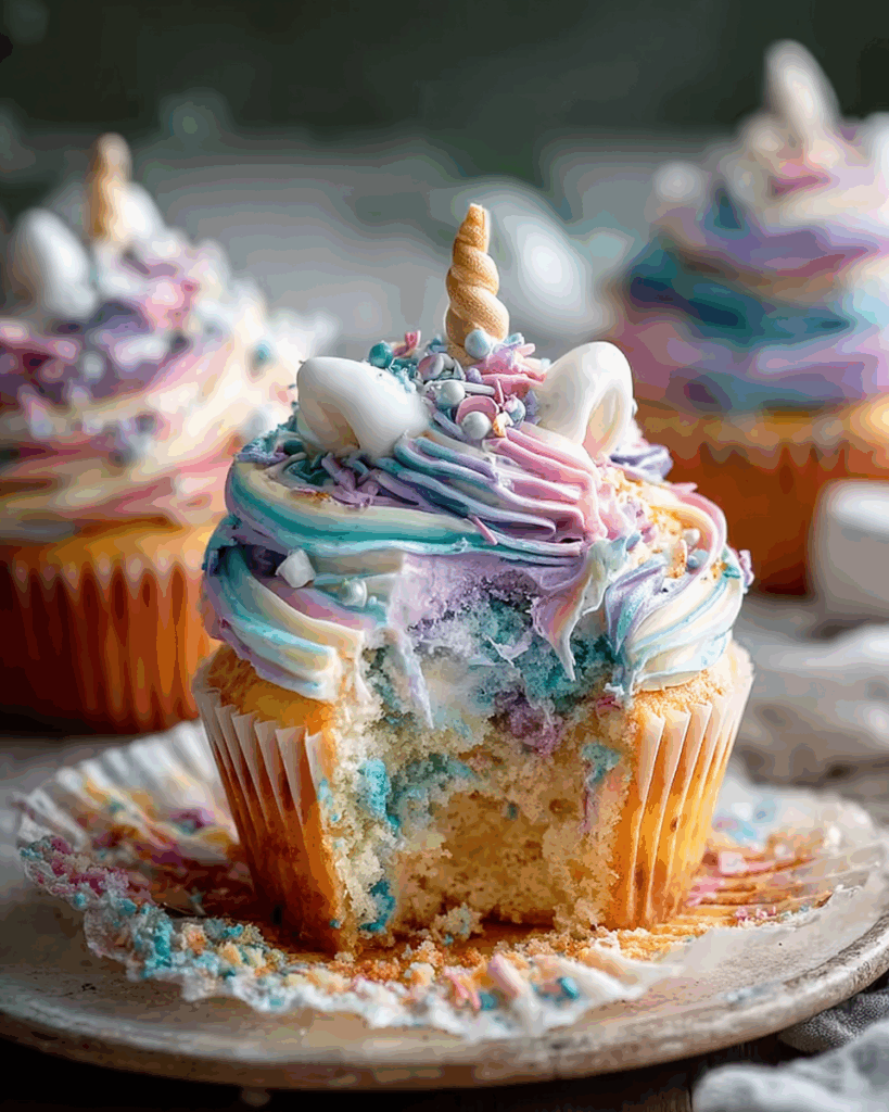 Whimsical pastel Unicorn Cupcakes with a soft, fluffy vanilla base and swirled pastel buttercream, finished with sprinkles and edible glitter. Perfect for parties and celebrations.